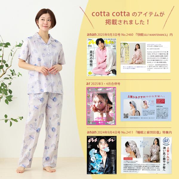 パジャマ レディース 綿100% ダブルガーゼ 半袖 長ズボン 薄手 夏用 ルームウェア 上下 cottacotta 花柄 北欧 前開き 春 夏 かわいい 母の日 ギフト プレゼント
