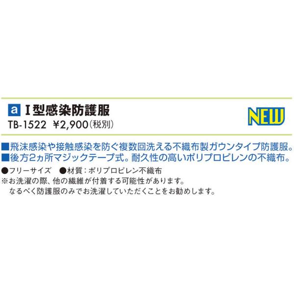 高田ベッド I型感染防護服 TB-1522 不織布製ガウンタイプ防護服 患者衣 検診着