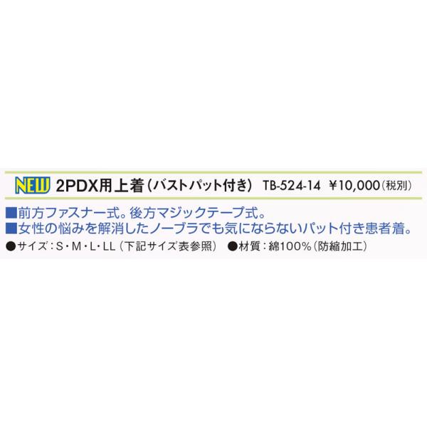 高田ベッド 2PDX用上着(バストパット付き) TB-524-14 患者衣 患者着 検診衣 検査衣 患者衣