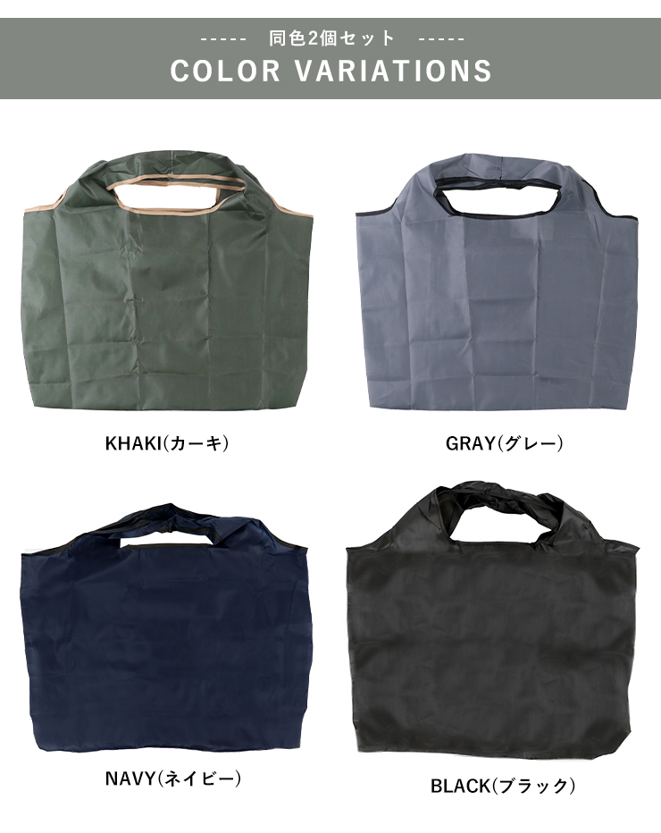2枚セット エコバッグ 折りたたみ おしゃれ 無地 コンパクト 大容量 大きい 大きめ 大容量 丈夫 メンズ シンプル お買い物バッグ エコバック B-140