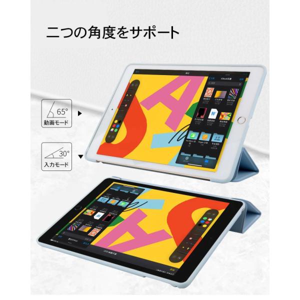 フロントカバーに内蔵されたマグネットによる安定したスタンド機能。 タイピングや動画視聴などiPadを立ててご利用いただけます。