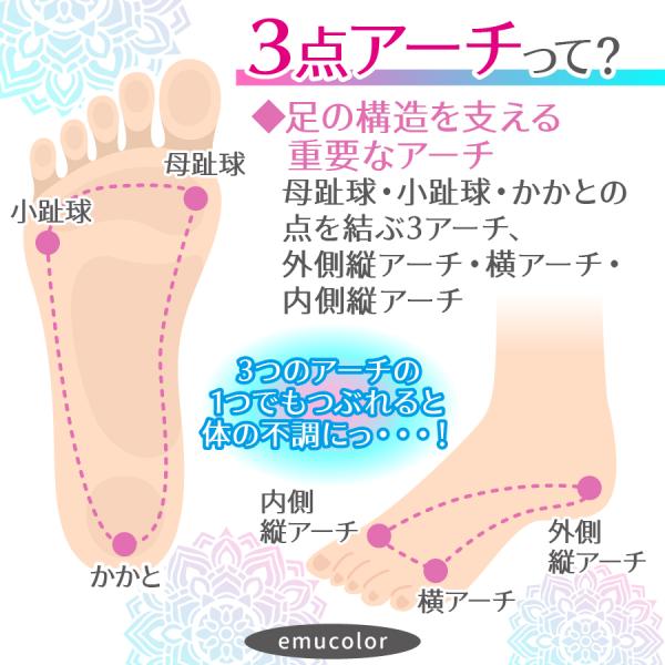 足裏の3点アーチがしっかりすることで自然と正しい姿勢が保てます