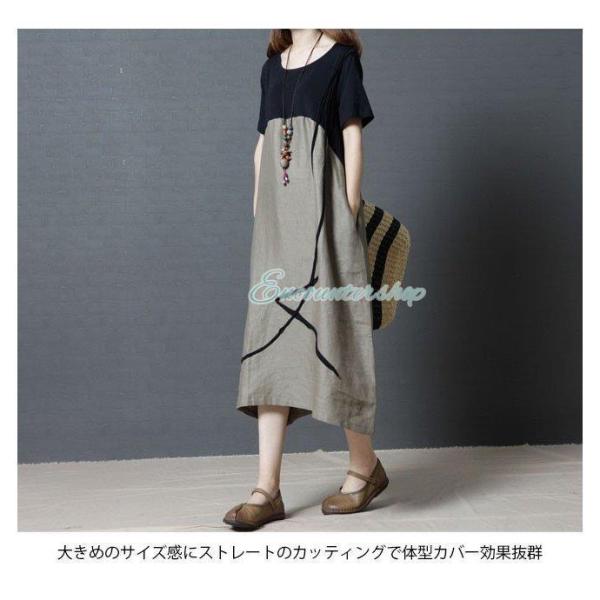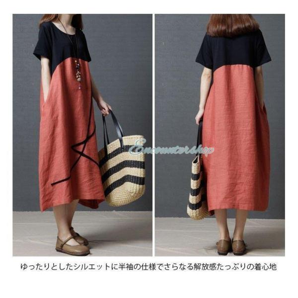 半袖ワンピース 体型カバー レディース ロングワンピ 丸襟 ゆったり 半袖 ワンピース ロング丈 カジュアル 大きいサイズ マキシ丈ワンピース 夏物