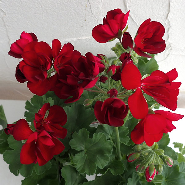 「カリオペ」は、現在流通しているアイビー系とゾナル系と言われる2種類の園芸種ゼラニウムを交配(種間交雑)して作出され、両方の長所を兼ね備えた最も新しいタイプの「ハイブリッド ゼラニウム」です。特に耐暑性に優れており、高温多湿な日本の夏でも休むことなく花を咲かせ続けます。また、その花の大きさと連続開花性は「ゼラニウムの王様」を思わせる存在感で、ハンギングバスケットや大きなコンテナ植えに最適です。