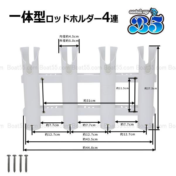 Boat55 4連ロッドホルダー×2個セット 安心の一体成型 だから頑丈 面倒な組立不要 簡単取付 ネジ付 ねじ 船 ボート 送料無料 沖縄県を除く ボート用品 20A0035