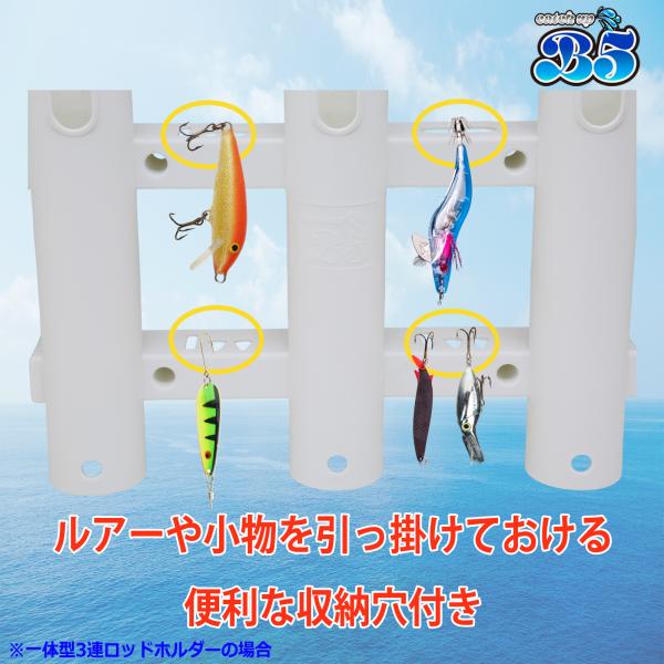 ホルダーのベース上下段には、ルアー・ジグなどの針掛けが上下それぞれに付いています。