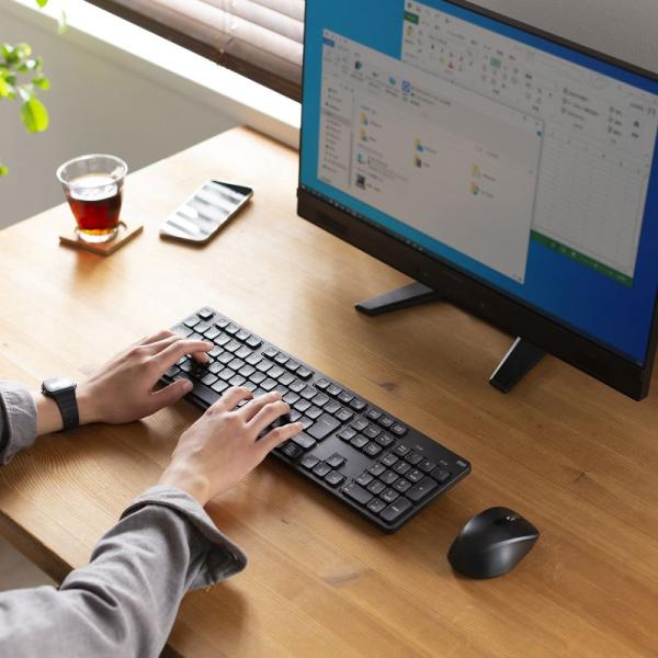 キー入力が静かな静音キーボード。WindowsやMac等複数のOSに対応。3台同時接続出来るマルチペアリング対応。Bluetooth・テンキーあり。SKB-BT37BK