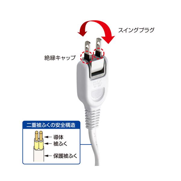 ACアダプタを無駄なく設置できる4分岐タイプの電源延長コード。ホワイト。