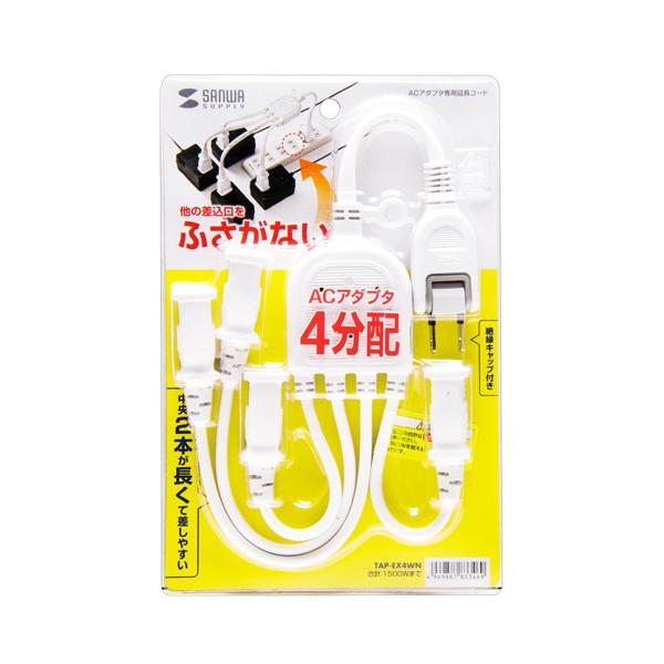 訳あり新品 AC延長コード ACアダプタ専用 4分岐 ホワイト TAP-EX4WN サンワサプライ 外装にキズ、汚れあり ネコポス対応