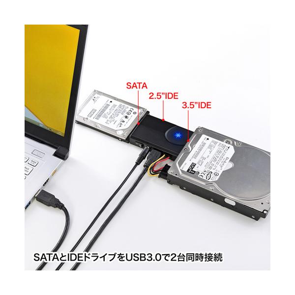 SATAとIDEドライブをUSB3.0で2台同時接続できる変換ケーブル。