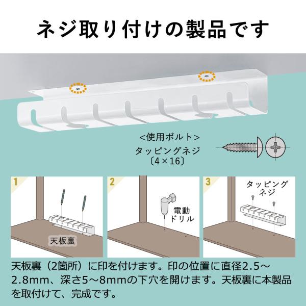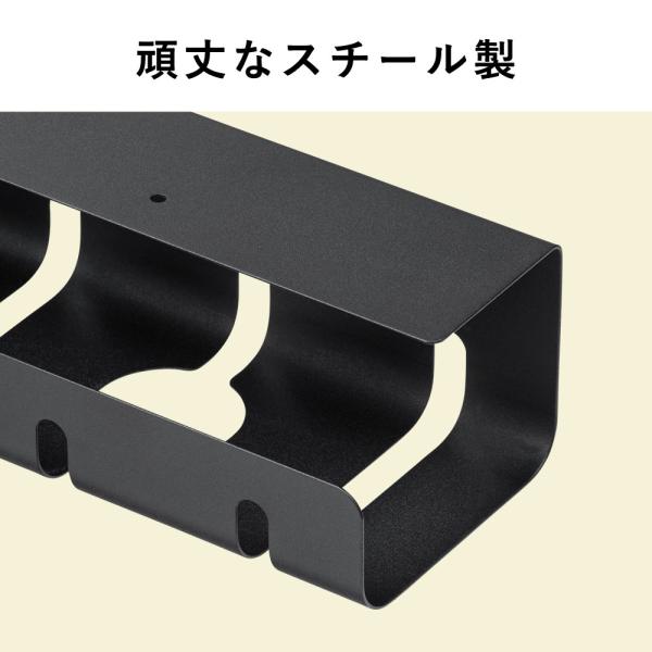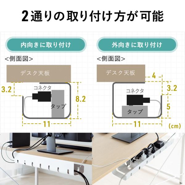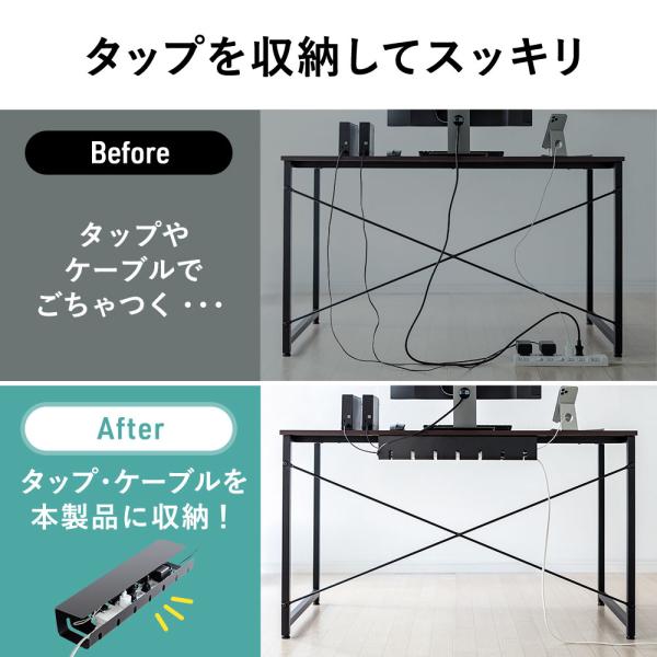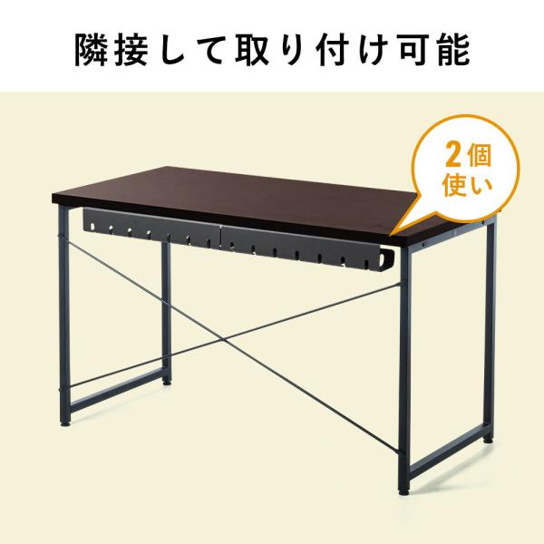 天板裏に取り付けて、電源タップとケーブルを一緒に収納できるケーブルトレーです。シンプルな見た目でごちゃつくケーブルの配線を目隠しできます。2個セット。
