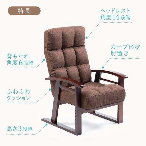 高座椅子 高齢者 リクライニング 座敷 座卓 寝れる ハイバック 肘掛け 立ち上がりやすい 畳 和室 1人用 敬老の日 プレゼント 耐荷重90kg
