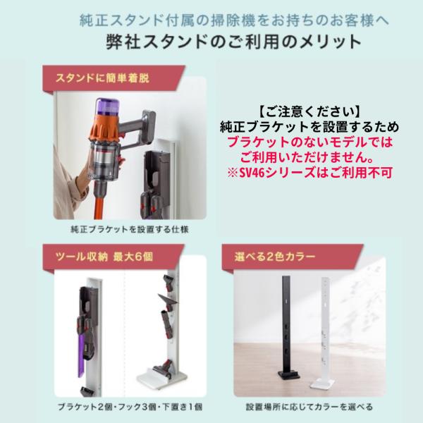 壁に穴を開けずに壁掛け収納できるダイソンスタンド。付属パーツも収納。Dysonコードレスクリーナー DigitalSlim・V11・V10・V8・V7・Micro 1.5kg専用。設置したまま充電可能。