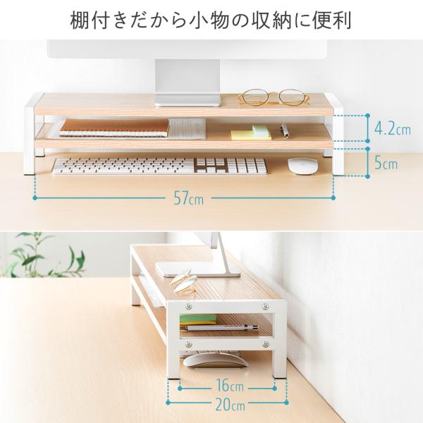 モニター台 卓上 2段 60cm 机上ラック 木製 棚 キーボード収納 奥行20cm EEX-DES26