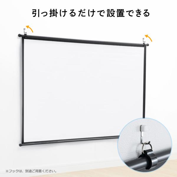 プロジェクタースクリーン 80インチ ワイド 軽量 タペストリー 掛け軸 壁掛け 吊り下げ S字フックにかけられる 掛け軸タイプ カーテンレール 物干し 高画質 4K 大型 ロール 賃貸 ピクチャーレール おすすめ
