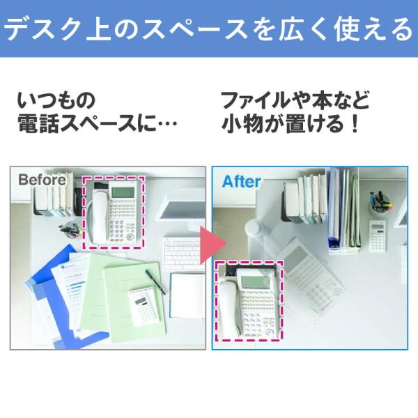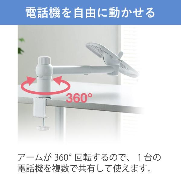 360°回転や伸縮アームにより電話機を自由に移動できる電話台です。電話台下のスペースを有効活用できデスクを広く使えます。