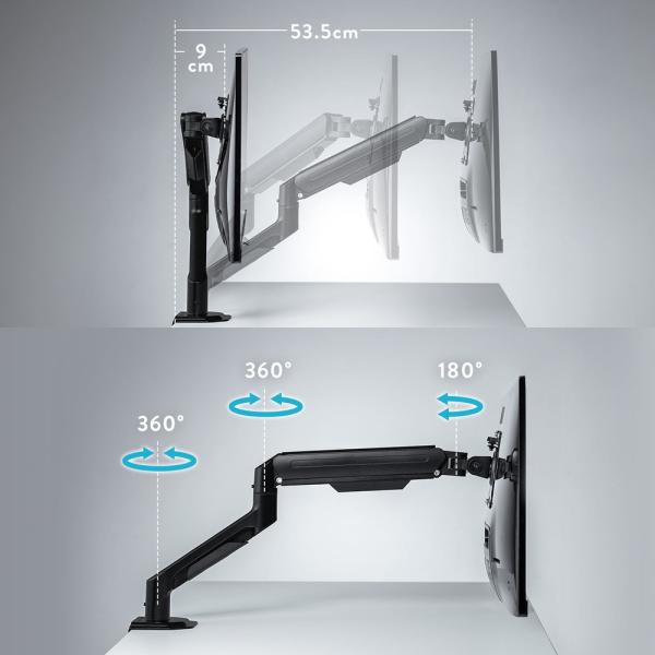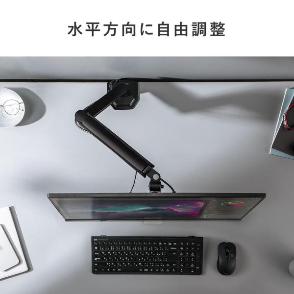 メカニカルスプリング内蔵でモニターの高さ調整が楽。モニター位置を自由に調整でき、13〜32インチサイズのモニターに対応する2~8kgまで対応のシングルモニターアーム。