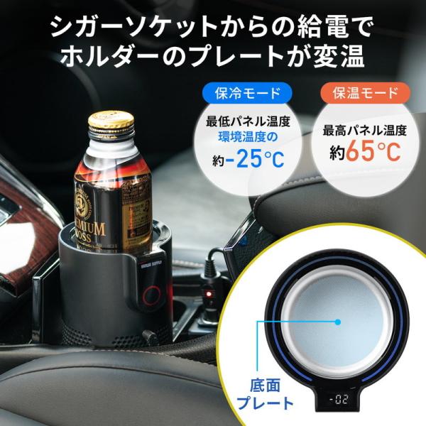 ドリンクホルダー シガーソケット プレート カップホルダー 保冷 保温 シガー電源 12V車専用 ペットボトル アルミ缶 スチール缶 温度表示 200-CAR085 サンワサプライ