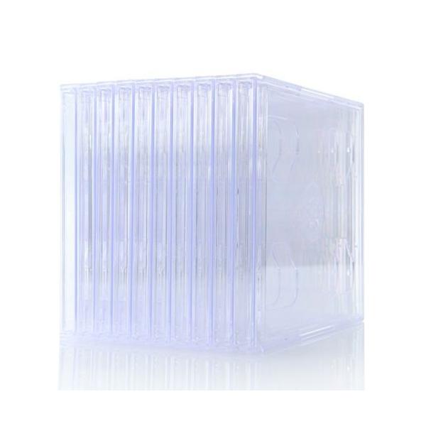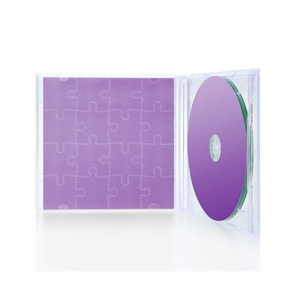 一般的な音楽用CDケースと同じ厚さ10mmのプラケースにメディア2枚を同時収納可能。