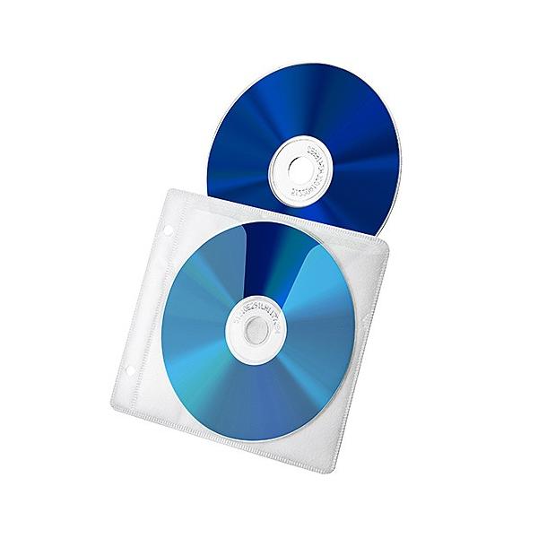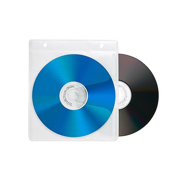 ブルーレイディスクの収納に対応した、不織布ケース。1ケースにつき2枚入る両面収納タイプ。リング穴付で、リング式ファイルに対応したブルーレイディスクケース。DVD・CD収納対応。100枚入。ホワイト。