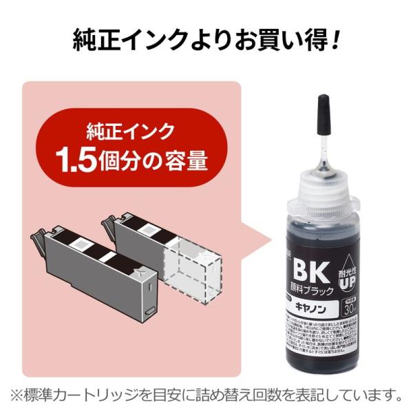 キヤノンのプリンタに対応したマルチタイプの詰め替えインク。点下方式で入れることができる工具不要な簡単詰め替え。顔料ブラック。30ml。