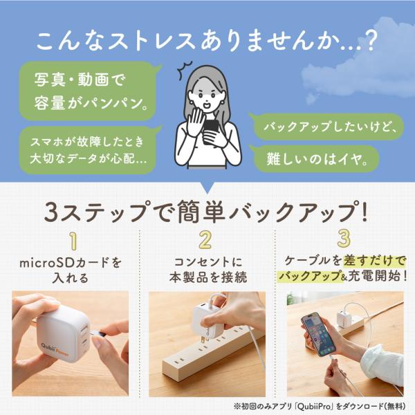 Qubii Power USB-C バックアップ & 急速充電 PD45W iPhone Android 対応 microSD カードリーダー 写真保存 自動バックアップ 10年保証 ホワイト ブラック 400-ADRIP015W 400-ADRIP015BK サンワサプライ