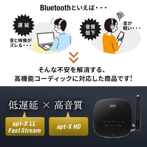 Bluetooth送信機 Bluetooth受信機 ワイヤレストランスミッター ワイヤレスレシーバー 400-BTAD008 サンワサプライ
