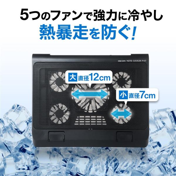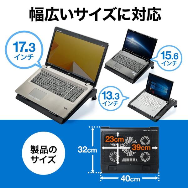ノートパソコンクーラー ノートPCクーラー 冷却台 静音 17インチ 5ファン USB給電 風量調節 角度調節 400-CLN025 サンワサプライ