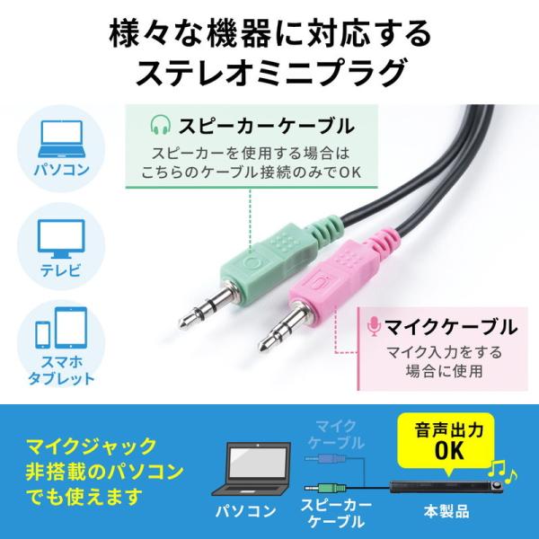 PC スピーカー サウンドバースピーカー 出力最大6W 大音量 マイク端子とヘッドホン端子付 USB給電 AUX接続 テレビ/PC/スマホ対応 EZ4-SP099