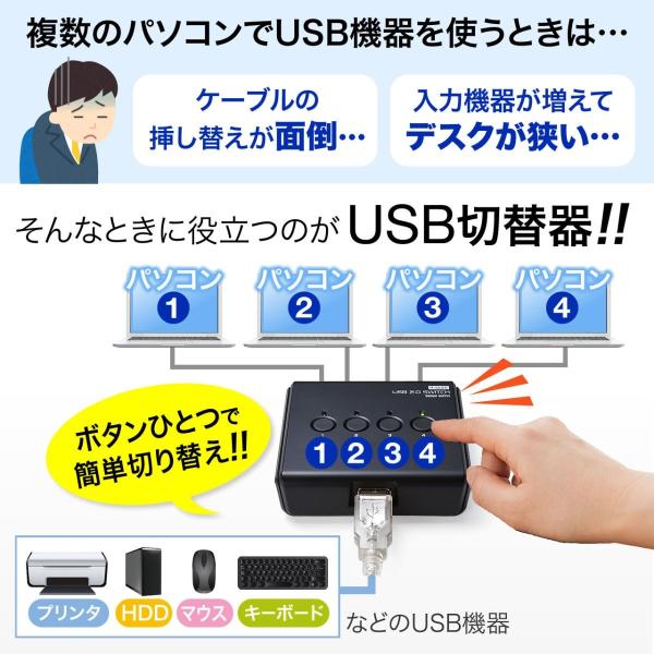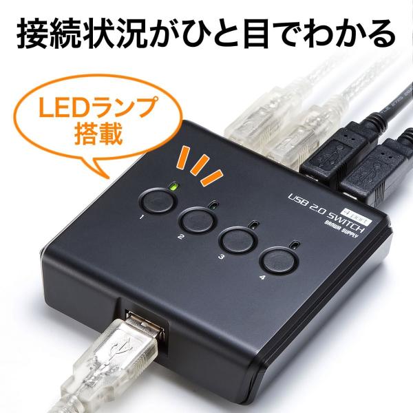 キーボード マウス プリンタ 4台 共有 USB 切替器 電源不要 スイッチ 切替 4回路 USBセレクター 400-SW021 サンワサプライ