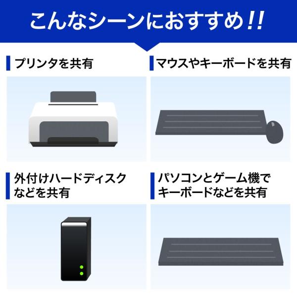 4台のパソコンで1台のUSB機器を共有