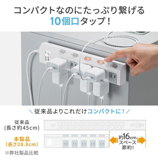 電源タップ マグネット スイッチ 10個口 雷ガード 個別スイッチ 700-TAP051 サンワサプライ