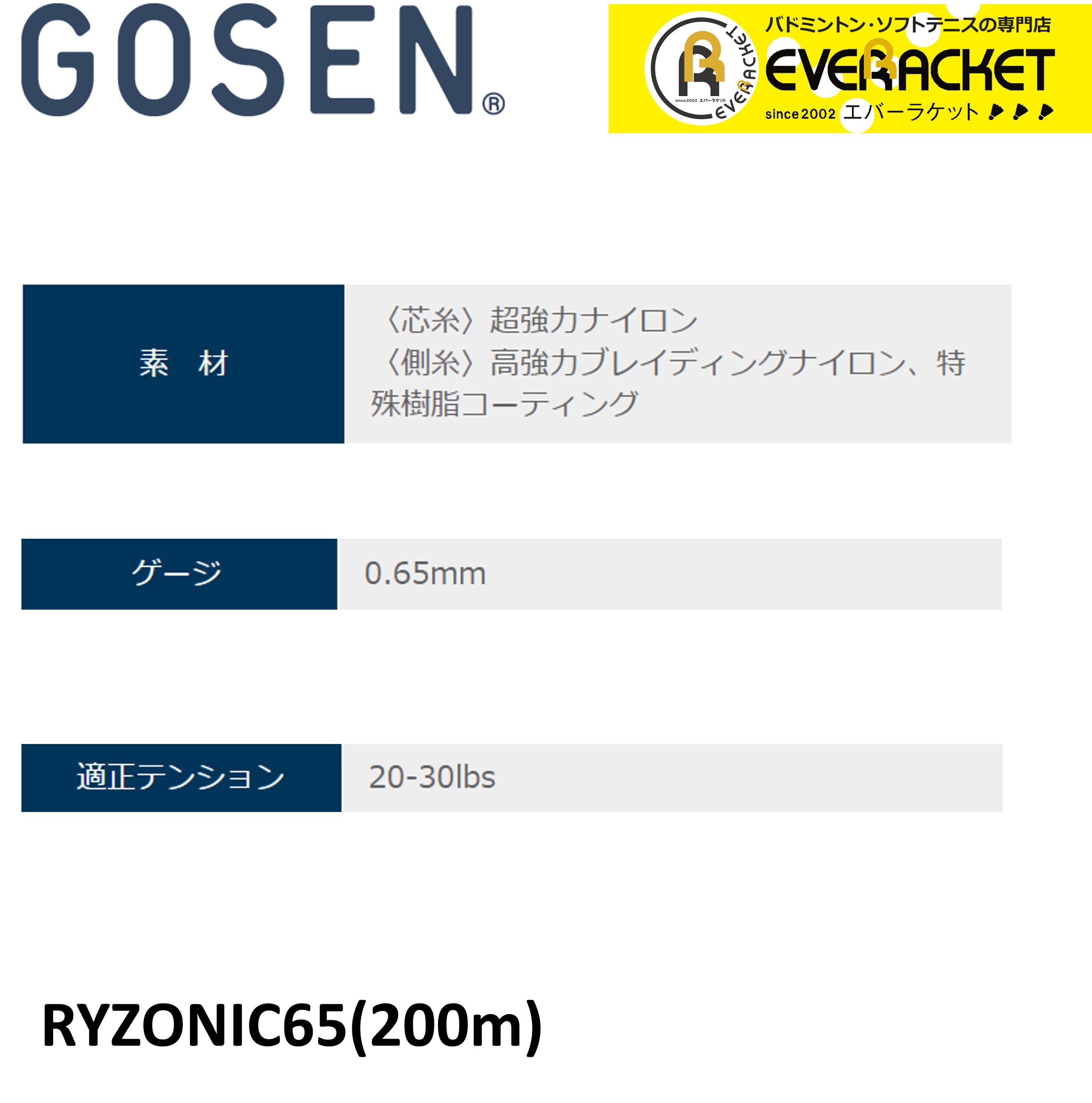 【50%OFF!】【LINE追加で5%OFFクーポン配布中】【最短出荷】GOSEN ゴーセン バドミントンストリング ガット 200m ライゾニック65 RYZONIC65 BSRY652 ロール