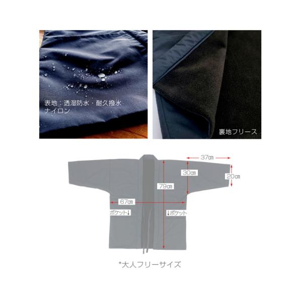 ナイロン法被(裏フリース) アウトドア法被 アウトドア キャンプ はっぴ ハッピ はんてん 半纏 半天 法被 撥水 大人フリーサイズ ブラック 黒