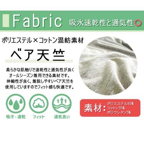 材質:ポリエステル60% 綿35% ポリウレタン5% (ベア天竺)
