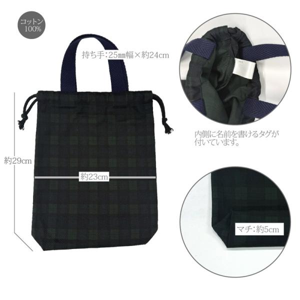 上履き入れ 上履き袋 靴袋 シューズバッグ シューズケース シューズ入れ 引っ掛け紐あり 巾着 黒 ブラック 水玉 紺濃 ネイビー チェック ブラックウォッチ