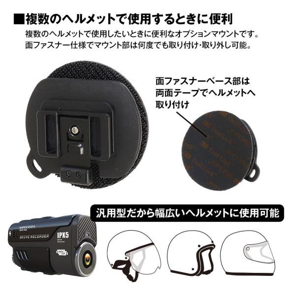 BDVR‐A002用 面ファスナー式マウント ヘルメット式マウント ヘルメット式ブラケット バイク ドライブレコーダー オートバイ ゆうパケット3
