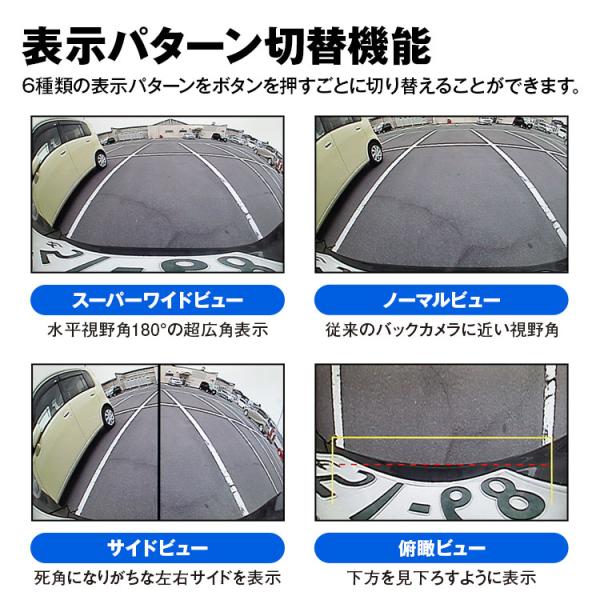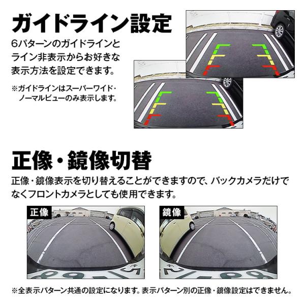 バックカメラ 後付け マルチビュー カメラ 超広角 水平180° サイド 下方 バック連動 ガイドライン 正像 鏡像 フロント 12V 24V