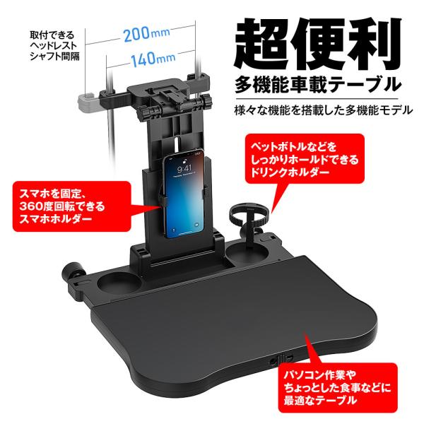 車載テーブル 後部座席 テーブル ヘッドレストテーブル リアトレイ 車用折り畳みテーブル 車載ホルダー付 360度回転 角度調整可能