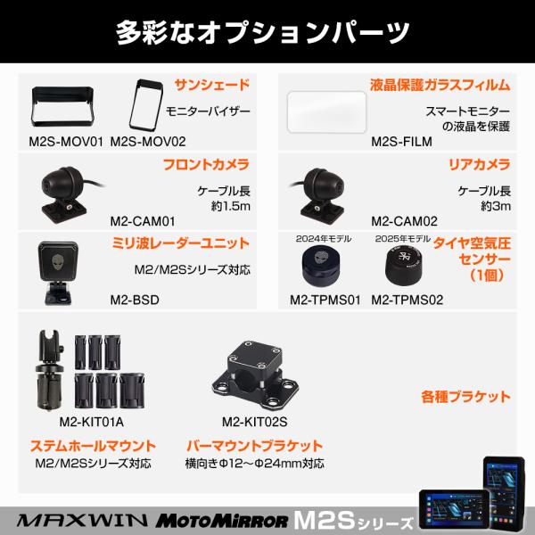 バイク ディスプレイオーディオ M2シリーズ用 ハンドルミラーマウント 本体取付ブラケット オプションパーツ 装着ステー MAXWIN M2-KIT09