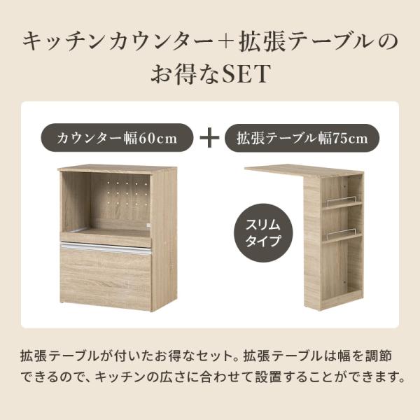 キッチンカウンター 拡張テーブルセット 収納 キッチン 棚 ラック スリム キッチン収納棚 おしゃれ Find ファインド 収納庫タイプ 幅60cm