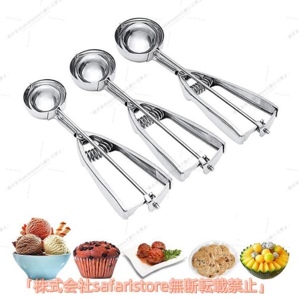 アイスクリームディッシャー 3個セット S M L ステンレス アイスクリームスプーン アイススクープ 業務用 飲食店 スプーン 小さい 料理用 キッ