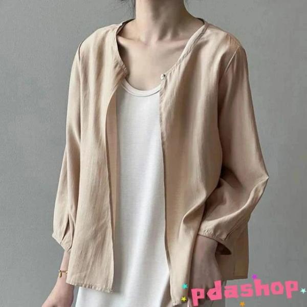 カーディガン 薄手 春アウター シアートップス ノーカラー レディース サマーカーディガン ショート丈 七分袖 シアーカーディガン シアー シ