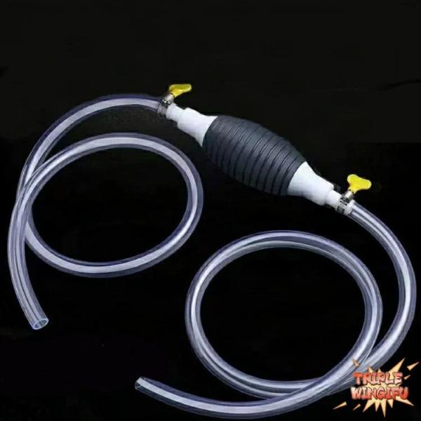 バイクの燃料タンクを取り外して、このポンプを使って車へガソリンを移送できます。