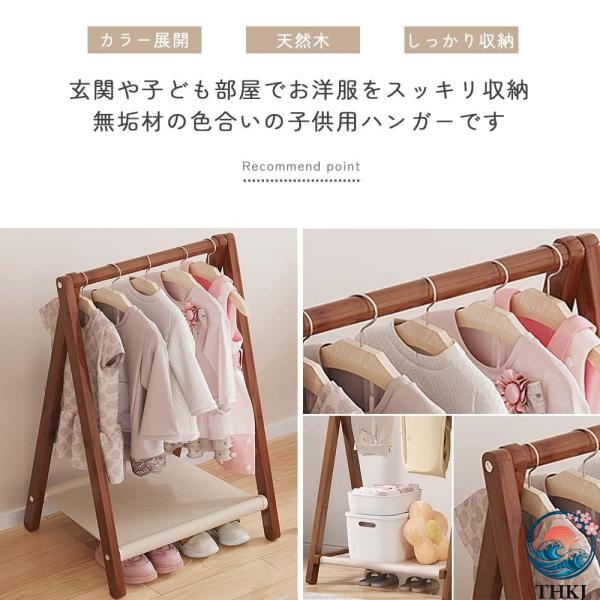 キッズ ハンガーラック 子供用 木製 ベビーハンガー 自立型 収納ラック コートハンガー 子供服 ペット用クローゼット 洋服掛け 衣類収納 おしゃれ 棚付き