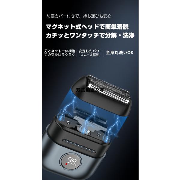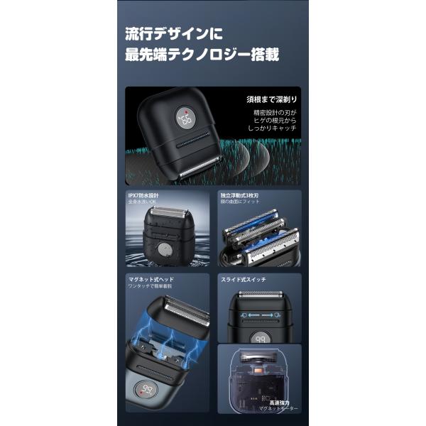 電動シェーバー メンズシェーバー 小型 往復式 電動 髭剃り 電気カミソリ 電気シェーバー ひげそり 3枚刃 乾湿両用 IPX7完全防水 125g超軽量