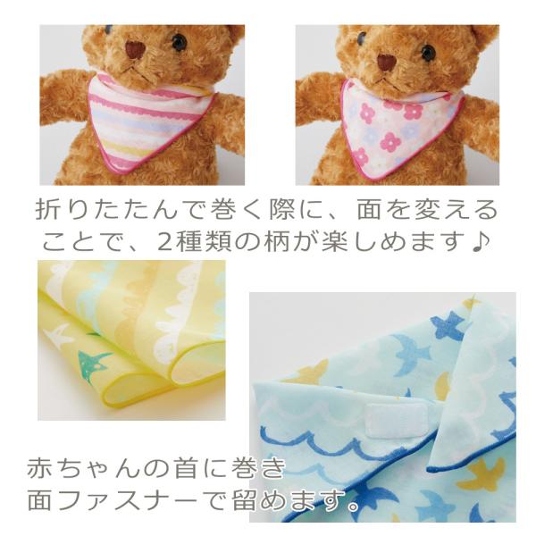 面ファスナー付きなので、赤ちゃんの首にも付けやすく、留める位置によってサイズの調節も可能です。