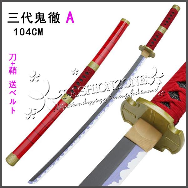 ONE PIECE ワンピース ゾロ 風 秋水 和道一文字 三代鬼徹 雪走 木製刀 剣 104CM 竹製刀 ベルト付けセット コスプレ道具 武器