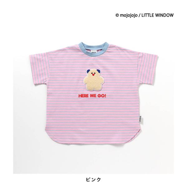 おしゃれ かわいい 可愛い オシャレ 半袖 ワッペン 天竺 綿100 コットン モジョジョジョ mojojojo キャラクター 韓国 カラフル ポップ ボーダー カジュアル ヒヨコ ひよこ 猫 ネコ ねこ キャット くま クマ ベア もこもこ ゆるかわ 大きめ 大きい オーバーサイズ