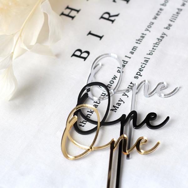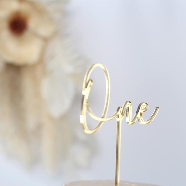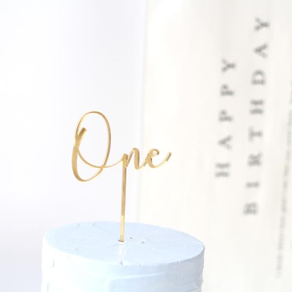 One ケーキトッパー ゴールド アクリル製 日本製 誕生日 ケーキ バースデー 成長記録 おしゃれ 赤ちゃん お祝い 金 かわいい インスタ映え 一歳 飾り cake00024